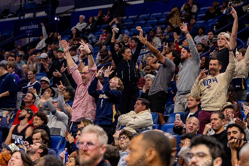 Dec 11, 2025; New Orleans, Louisiana, USA; New Orleans Pelicans fans react to a play against the Portland Trail Blazers New Orleans Pelicans fans during the second half at Smoothie King Center. Mandatory Credit: Stephen Lew-Imagn Images NBA: Portland Trail Blazers at New Orleans Pelicans