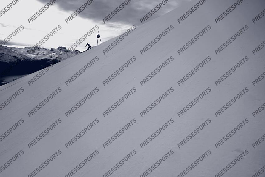 ST MORITZ, SWITZERLAND - DECEMBER 10: Paysage during the Audi FIS Alpine Ski World Cup Women's Downhill Training on December 10, 2025 in St Moritz, Switzerland. (Photo by Mateo Sgambato/Agence Zoom) ENTRAINEMENT DESCENTE ST MORITZ