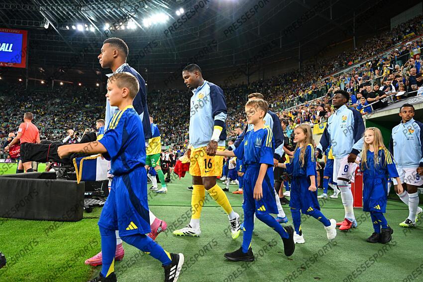 mbappe lottin (kylian) maignan (mike) FOOT ELIMINATOIRES COUPE DU MONDE 2026 2025 UKRAINE-FRANCE TARCZYNSKI ARENA WROCLAW POLOGNE 05/09/2025 FAUGERE FRANCK avant ukraine/france