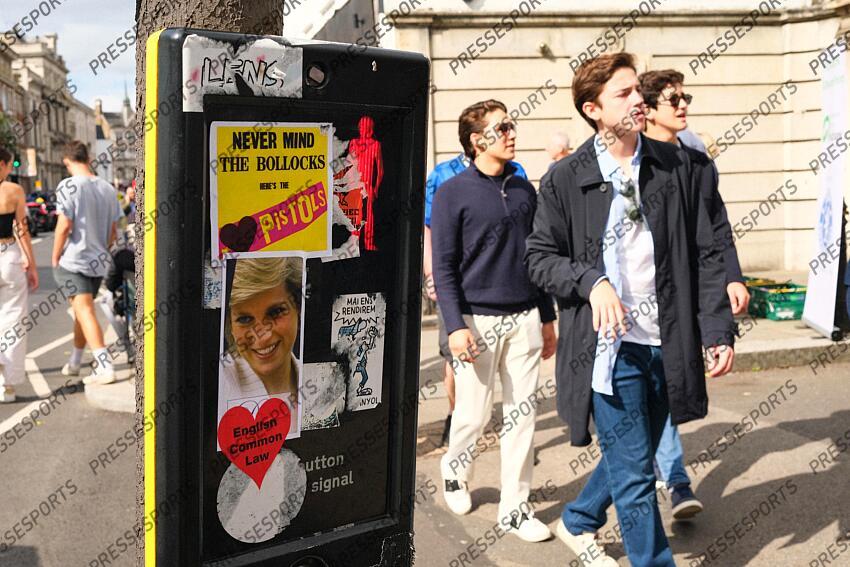 30 August 2025, London - Premier League Football - Chelsea v Fulham - Stickers on a crossing button - Photo: Jacques Feeney / Offside. CHELSEA-FULHAM (2-0)