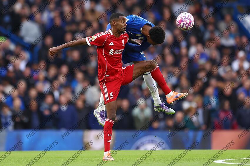 04 October 2025, London - Premier League Football - Chelsea v Liverpool - Josh Acheampong of Chelsea battles with Alexander Isak of Liverpool - Photo: Jacques Feeney / Offside. CHELSEA-LIVERPOOL FC (2-1)