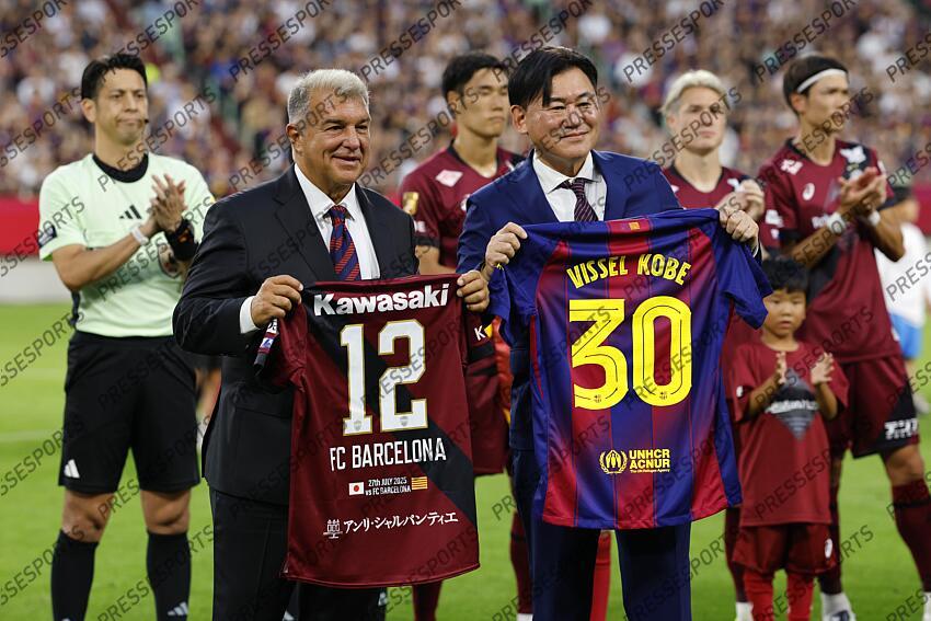 FC Barcelona's President Joan Laporta (Barcelona), Hiroshi Mikitani (Vissel), JULY 27, 2025 - Football / Soccer : Friendly match between Vissel Kobe 1-3 FC Barcelona at Noevir Stadium Kobe in Hyogo, Japan. (Photo by AFLO)