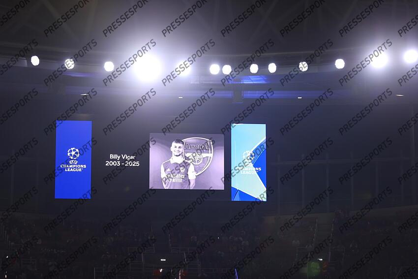 01 October 2025, London - Champions League - Arsenal v Olympiacos - A minute applause happens in memory of Billy Vigor who previously played for Arsenal - Photo: Jacques Feeney / Offside. ARSENAL-OLYMPIACOS (2-0)