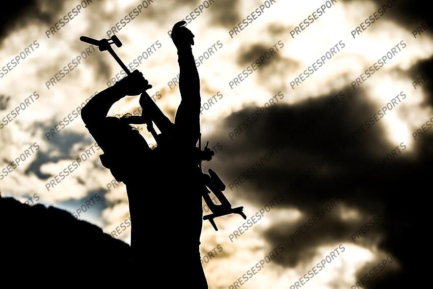 jeanmonnot (lou) - (fra) - remet sa carabine sur le dos BIATHLON JO MILAN CORTINA 2026 2026 RELAIS 4X6 KM MIXTE BIATHLON ARENA ANTHOLZ ANTERSELVA ITALIE 08/02/2026 GARNIER ETIENNE photo retouchee