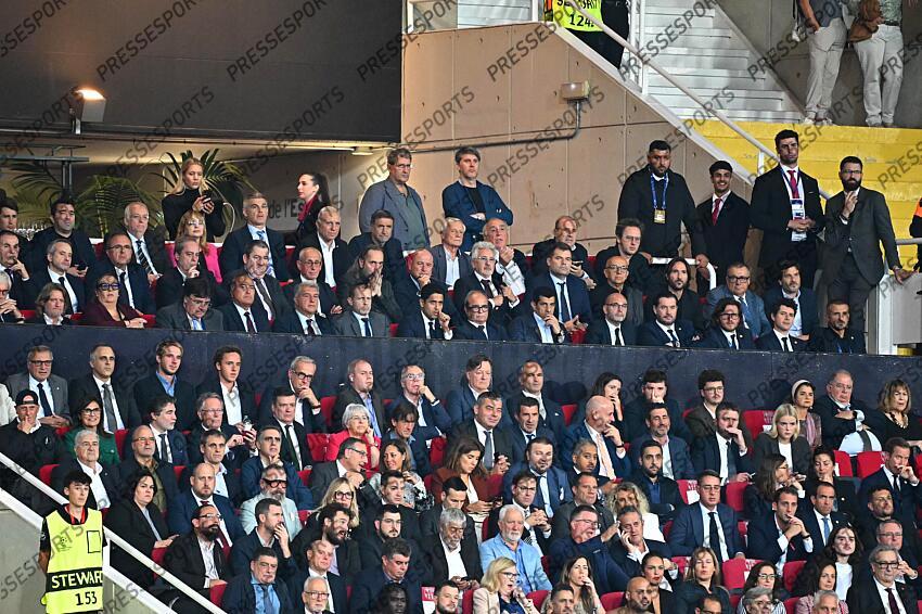 laporta (joan) ceferin (aleksander) al khelaifi (nasser) FOOT LIGUE DES CHAMPIONS 2025 BARCELONE-PSG (1-2) STADE OLYMPIQUE LLUIS COMPANYS BARCELONE ESPAGNE 01/10/2025 LAHALLE PIERRE