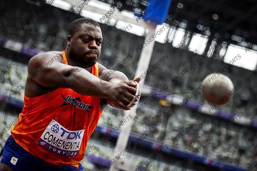 TOKYO - Denzel Comenentia in the hammer throw at the World Athletics Championships at the Japan National Stadium. ANP ROBIN VAN LONKHUIJSEN CHAMPIONNATS DU MONDE D'ATHLETISME A TOKYO