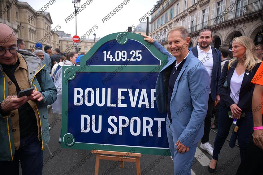 grospiron (edgar) OMNISPORTS 2025 plaque Boulevard du Sport LA FETE DU SPORT PARIS FRANCE 14/09/2025 PAPON BERNARD premiere edition de la fete du sport rue de Rivoli à Paris