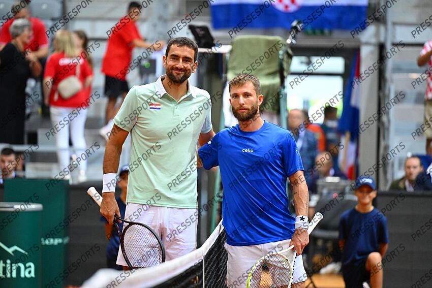 cilic (Marin) Moutet (Corentin) TENNIS CROATIE-FRANCE COUPE DAVIS 2025 CILIC/MOUTET DVORANA GRADSKI VRT OSIJEK CROATIE 13/09/2025 FAUGERE FRANCK