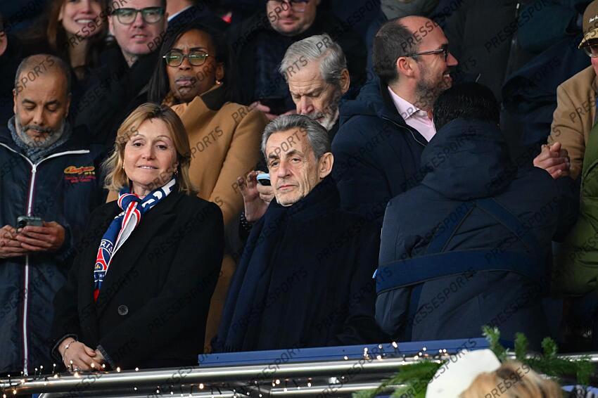 braun pivet (yael) sarkozy (nicolas) FOOT LIGUE DES CHAMPIONS 2025 PSG-TOTTENHAM (5-3) PARC DES PRINCES PARIS FRANCE 26/11/2025 REAU ALEXIS
