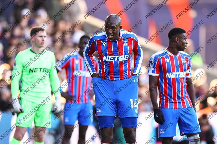 30 November 2025, London - Premier League Football - Crystal Palace v Manchester United - Jean-Philippe Mateta of Crystal Palace adjusts his shorts - Photo: Jacques Feeney / Offside. CRYSTAL PALACE-MANCHESTER UNITED (1-2)