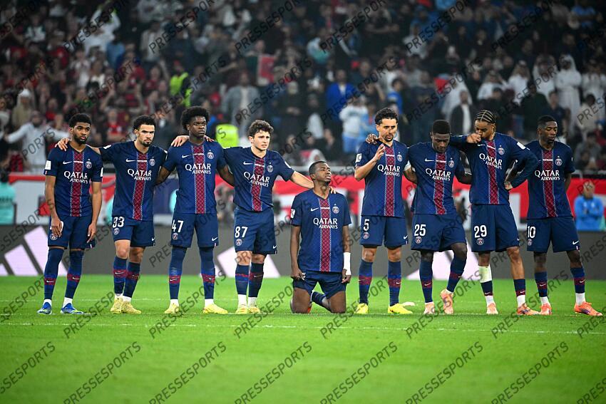 mbaye (ibrahim) zaire emery (warren) ndjantou (quentin) neves (joao) pacho (willian) marquinhos mendes (nuno) barcola (bradley) dembele (ousmane) FOOT COUPE INTERCONTINENTALE 2025 PSG-FLAMENGO (1-1 ; 2-1 tab) STADE AHMAD BEN ALI AL RAYYAN QATAR 17/12/2025 REAU ALEXIS seance des tirs au but