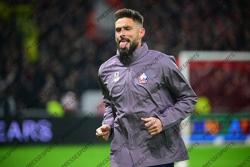 giroud (olivier) FOOT LIGUE EUROPA 2026 LILLE-FRIBOURG (1-0) STADE PIERRE MAUROY VILLENEUVE D'ASCQ FRANCE 29/01/2026 PAPON BERNARD tire la langue