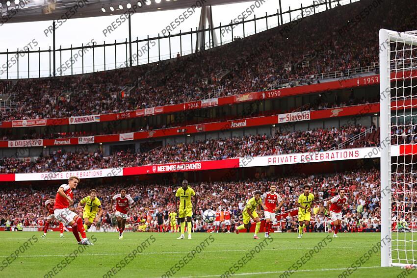 06 August 2025, London - Emirates Cup - Arsenal v Villarreal - Martin Odegaard of Arsenal scores their second goal from the penalty spot - Photo: Jacques Feeney / Offside. ARSENAL-VILLARREAL (2-3)