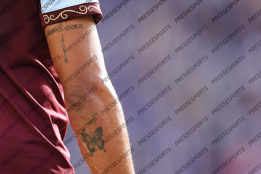13th September 2025 - Premier League - Everton v Aston Villa - Tattoos on the arm of Tyrone Mings of Aston Villa - Photo: Simon Stacpoole / Offside. EVERTON-ASTON VILLA (0-0)