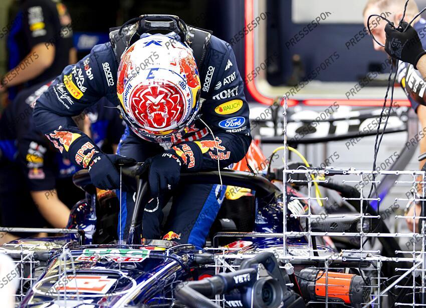 BAHRAIN - Max Verstappen (Red Bull Racing) steps out of his car during the first day of testing at the Bahrain International Circuit before the start of the Formula 1 season. SANDER KONING / ANP TEST DE PRE-SAISON