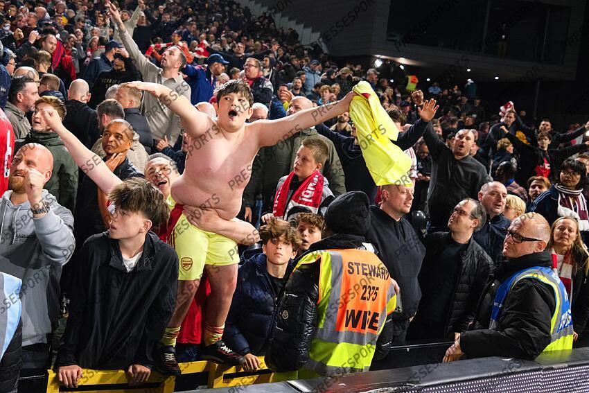 18 October 2025, London - Premier League Football - Fulham v Arsenal - Arsenal fans - Photo: Jacques Feeney / Offside. FULHAM-ARSENAL (0-1)