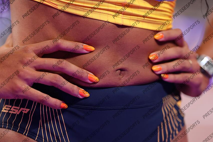 Détail mains vernis à ongle ATHLETISME CHPTS DU MONDE 2025 2025 HEPTATHLON STADE OLYMPIQUE NATIONAL TOKYO JAPON 19/09/2025 BOUE SEBASTIEN vicente (maria) - (esp) - manucure