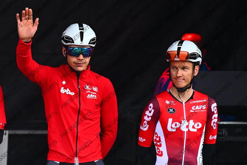 HAACHT, BELGIUM - SEPTEMBER 20 : De Lie Axel (BEL) of Lotto Cycling Team Development during the 27th edition of Super 8 Classic an UCI ProSeries 1.Pro one day cycling road race for Men Elite of 198.9 km with start in Brakel and finish in Haacht on September 20, 2025 in Haacht, Belgium, 20/09/2025 ( Motordriver Rodrique Verfaillie - Photo by Gregory Van Gansen / Photonews SUPER 8 CLASSIC