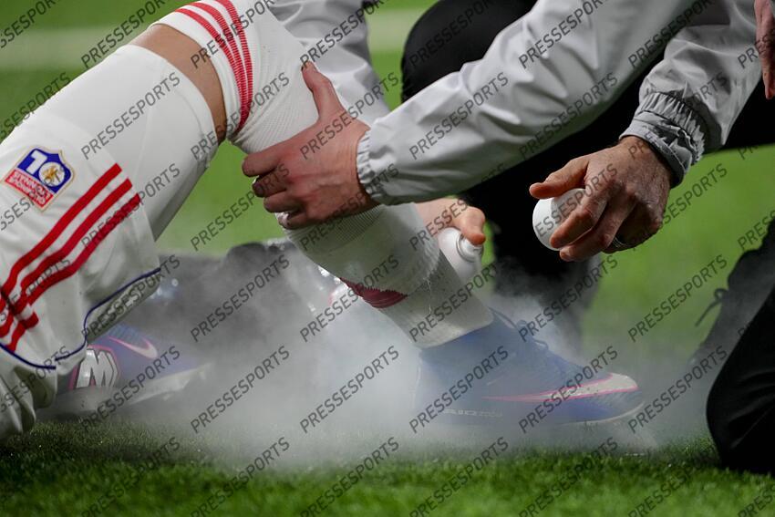 Schweiz: UEFA Europa League 2025/26, BSC Young Boys vs Olympique Lyonnais - Stadion Wankdorf, Bern: Afonso Moreira 17 Lyon wird behandelt nach einem Foul Bern Stadion Wankdorf Bern Schweiz Switzerland UEFA Europa League 2025 26, BSC Young Boys vs Olympique Lyonnais Stadion Wankdorf, Bern Afonso Moreira 17 Lyon is treated after a foul Bern Stadion Wankdorf Bern Switzerland Copyright: xKjetilxWaberx YOUNG BOYS BERNE-LYON (0-1)
