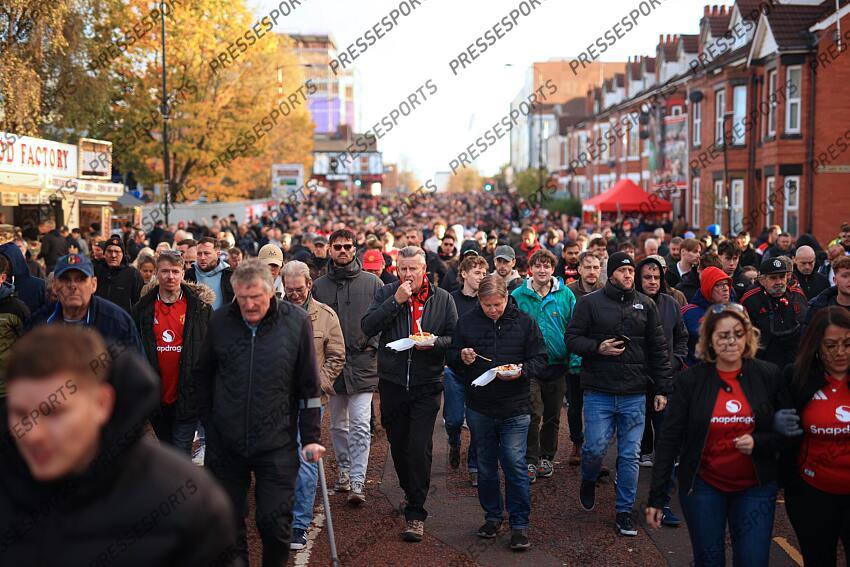 25th October 2025 - Premier League - Manchester United v Brighton & Hove Albion - Fans walk to the match - Photo: Simon Stacpoole / Offside. MANCHESTER UNITED-BRIGHTON (4-2)
