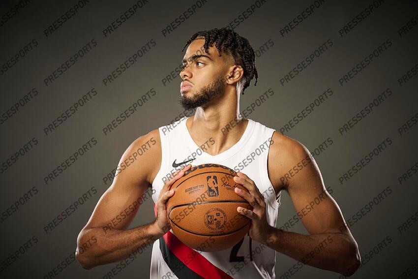 Sep 29, 2025; Portland, OR, USA; Portland Trail Blazers forward Rayan Rupert (21) during media day at the Moda Center. Mandatory Credit: Troy Wayrynen-Imagn Images NBA: Portland Trailblazers-Media Day