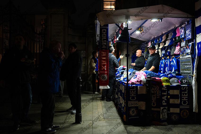 22 October 2025, London - UEFA Champions League - League Stage - Chelsea v Ajax - A Chelsea merch stand - Photo: Jacques Feeney / Offside. CHELSEA-AJAX AMSTERDAM (5-1)