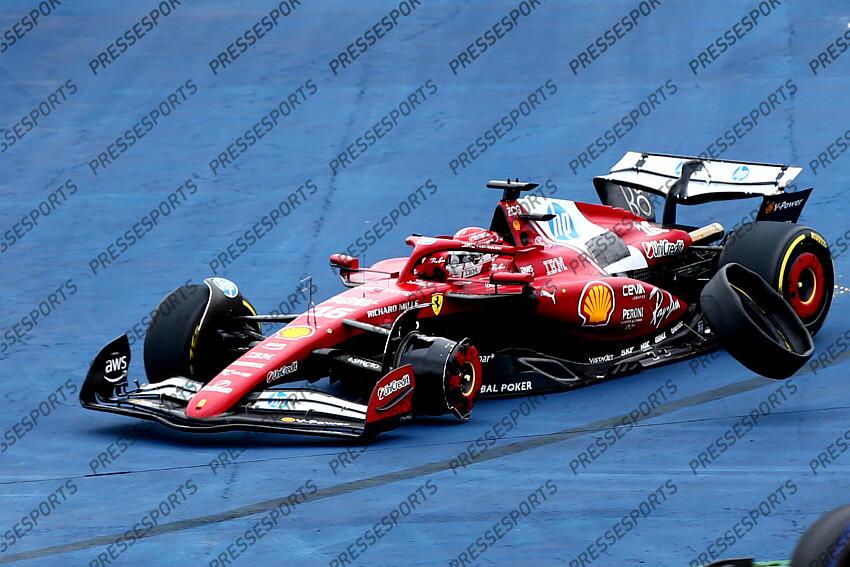 09.11.2025, Interlagos, Sao Paolo, BRA, FIA, Formel 1, Grosser Preis von Brasilien, Renntag, im Bild Charles Leclerc (MCO), Scuderia Ferrari HP ist mit defektem Vorderrad unterwegs. // during the race of the FIA Formula 1 Brazilian Grand Prix at the. EXPA Pictures ? 2025, PhotoCredit: EXPA/ Hasan Bratic ATTENTION - OUT of GER GRAND PRIX DU BRESIL