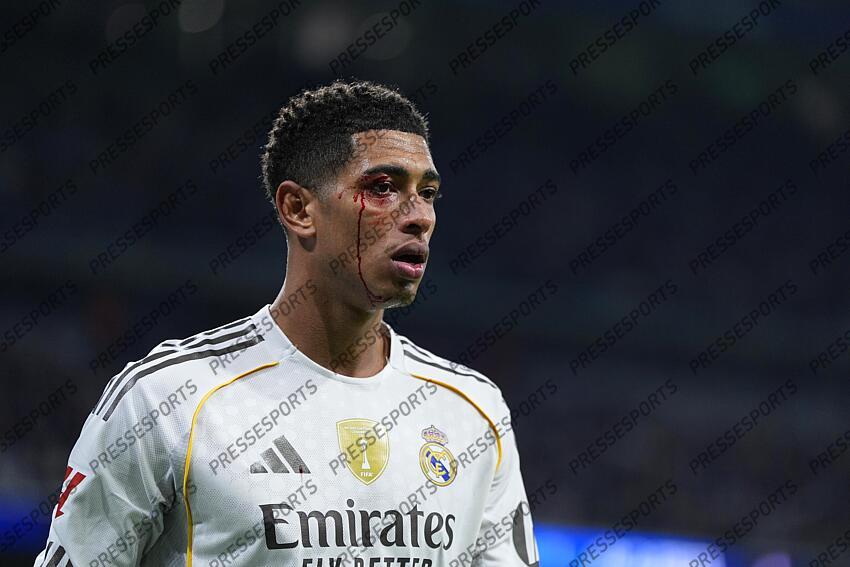 Jude Bellingham of Real Madrid CF has a wound on his right eyelid during the Spanish League, LaLiga EA Sports, football match played between Real Madrid and RC Celta de Vigo at Bernabeu stadium on December 07, 2025, in Madrid, Spain. REAL MADRID-CELTA VIGO (0-2)