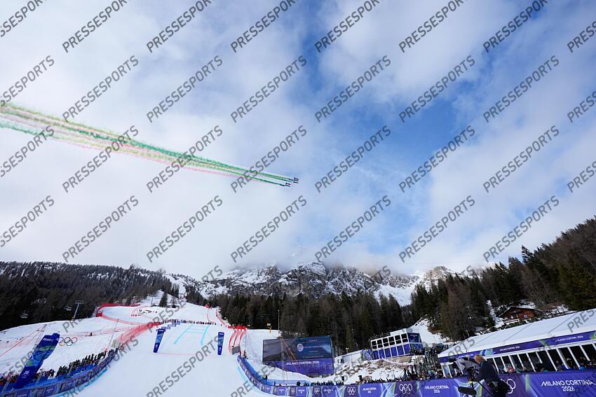 CORTINA D'AMPEZZO, ITALY - FEBRUARY 12: A General View during the Women's Super G on day six of the Milano Cortina 2026 Winter Olympics at Tofane Alpine Skiing Centre on February 12, 2026 in Cortina d'Ampezzo, Italy. (Photo by Agence Zoom/Agence Zoom) SUPER G FEMMES