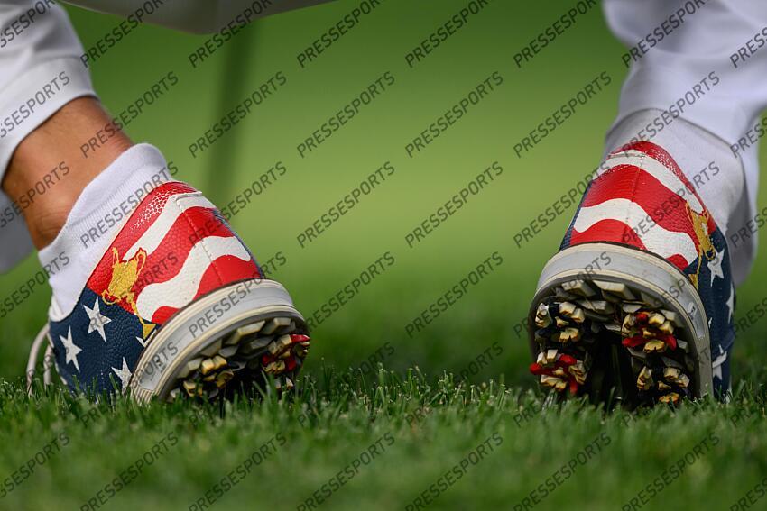250927 Justin Thomas shoes during a fourball match on day 2 of The Ryder Cup on September 27, 2025 in New York. Photo: Jesper Zerman / BILDBYRÅN / kod JZ / JZ0618 golf ryder cup day 2 bbeng genre golfskor 250927 Justin Thomas shoes during a fourball match on day 2 of The Ryder... DAY TWO FOURBALLS