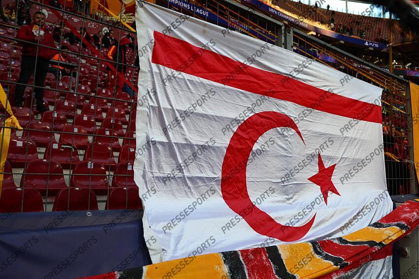 ISTANBUL, TURKEY, MAR. 10, 2026 SOCCER UEFA CHAMPIONS LEAGUE ROUND OF 16 1ST LEG, GALATASARAY vs. LIVERPOOL A Cyprus flag displayed in the stadium before kick-off. ISTANBUL ISTANBUL, TURKEY RAMS Park RAMS Park, Istanbul TURKEY GALATASARAY-LIVERPOOL (1-0)