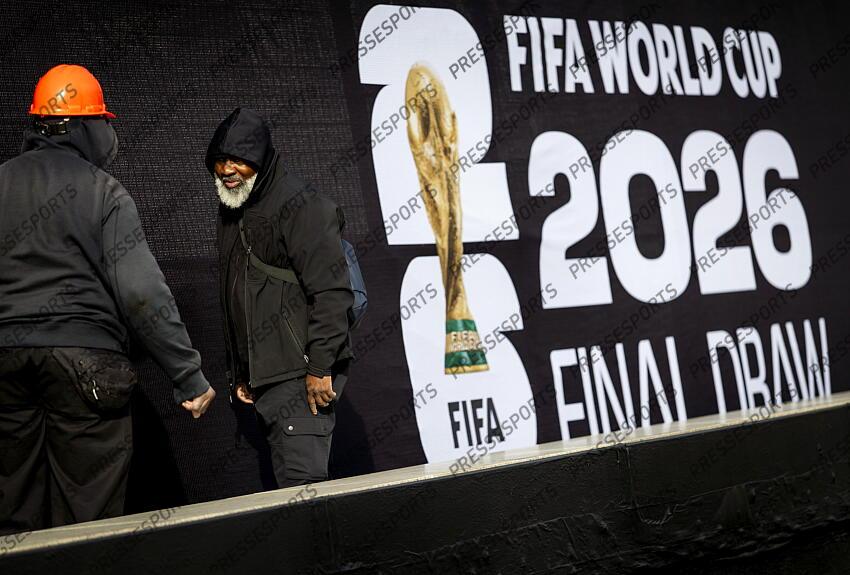 WASHINGTON – FIFA banners at the Kennedy Center on the day before the draw for the 2026 World Cup in the United States. ANP KOEN VAN WEEL TIRAGE AU SORT