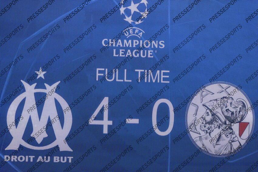 MARSEILLE - The score on a screen during the UEFA Champions League match between Olympique Marseille and Ajax at the Stade Velodrome on September 30, 2025, in Marseille, France. ANP MAURICE VAN STEEN MARSEILLE-AJAX AMSTERDAM (4-0)
