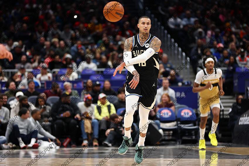 Jan 29, 2026; Washington, District of Columbia, USA; Milwaukee Bucks forward Kyle Kuzma (18) makes a pass during the first half against the Washington Wizards at Capital One Arena. Mandatory Credit: Daniel Kucin Jr.-Imagn Images NBA: Milwaukee Bucks at Washington Wizards