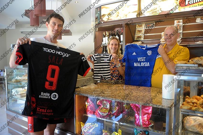 Un an apres la disparition du joueur de football Argentin Emiliano Sala, retour dans son village d origine. Les 13 et 14 janvier 2020 a Progreso, province de Santa Fe, Argentine. Luciano, Dianela et Marcos, les proprietaires de la principale boulangerie du village avaient reçus chez eux les representants du club de Cardiff lors de leur visite a Progreso. Quelques temps plus tard un colis leurs est arrive avec des vetements pour enfant du club et le maillot de Cardiff signe par toute l'equipe.