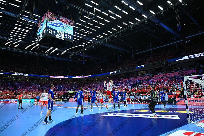 gidsel (mathias) desbonnet (remi) - gardien HAND EURO 2026 CHPT D'EUROPE 2026 2026 FRANCE-DANEMARK (29-32) SALLE JYSKE BANK BOXEN HERNING DANEMARK 22/01/2026 FAUGERE FRANCK
