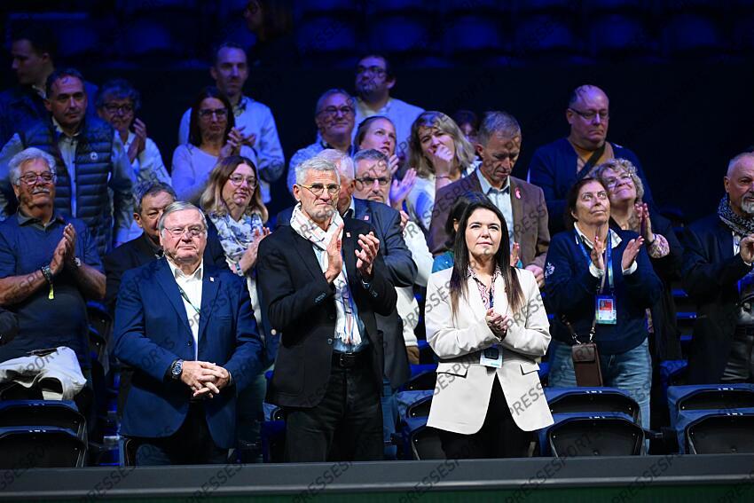 doumeyrou (pierre) moretton (gilles) de massy (melanie antoinette) TENNIS ROLEX PARIS MASTERS ATP MASTERS 1000 2025 VACHEROT/NORRIE PARIS LA DEFENSE ARENA NANTERRE FRANCE 30/10/2025 REAU ALEXIS de massy : Présidente de la Fédération monégasque de tennis