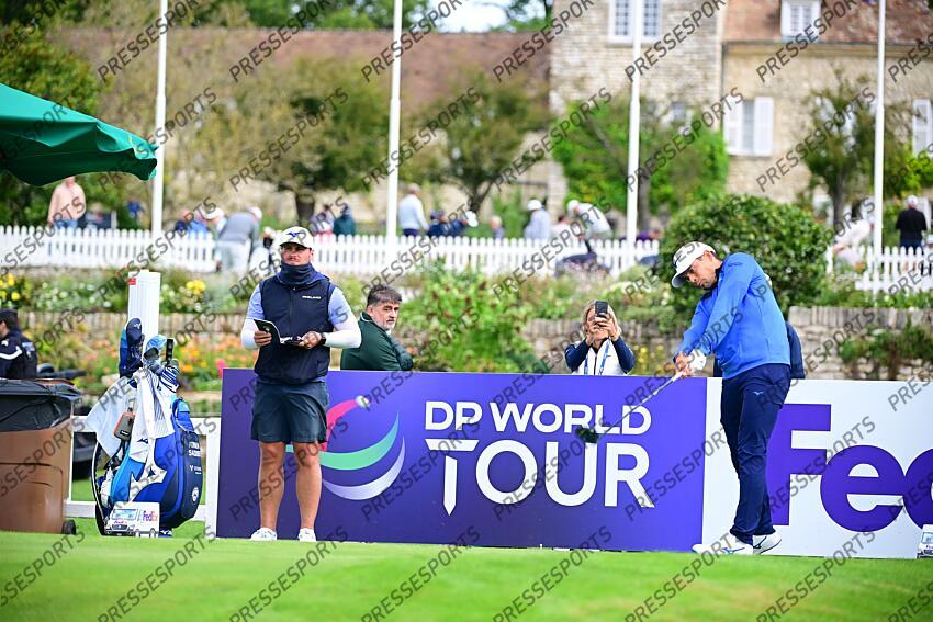 MAGAZINE SADDIER/GINOLA saddier (adrien) - (fra) - ginola (andrea) lors du pro-am de l’Open de France GOLF ENTRAINEMENT FEDEX OPEN DE FRANCE 2025 andrea ginola : fils de ginola (david) et caddie de saddier GOLF DE SAINT NOM LA BRETECHE SAINT NOM LA BRETECHE 17/09/2025 AUTISSIER JEAN BAPTISTE