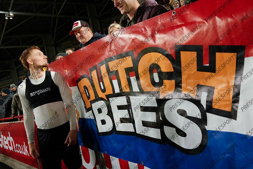 29 November 2025, London - Premier League Football - Brentford v Burnley - Sepp van den Berg of Brentford with dutch fans - Photo: Jacques Feeney / Offside. BRENTFORD-BURNLEY (3-1)
