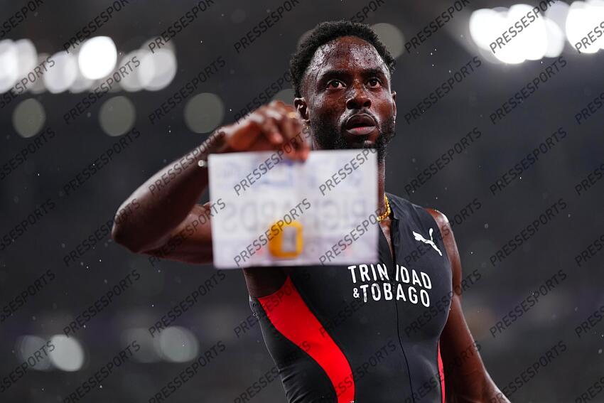Jereem Richards (TTO) tend un verset de la Bible ecrit derrière son dossard (religion Bible verset Jésus Jesus Christ) SEPTEMBER 18, 2025 - Athletics : World Athletics Championships Tokyo 2025 Men's 400m Final at National Stadium in Tokyo, Japan. (Photo by AFLO SPORT) Bible verset Jésus Jesus Christ CHAMPIONNATS DU MONDE D'ATHLETISME A TOKYO