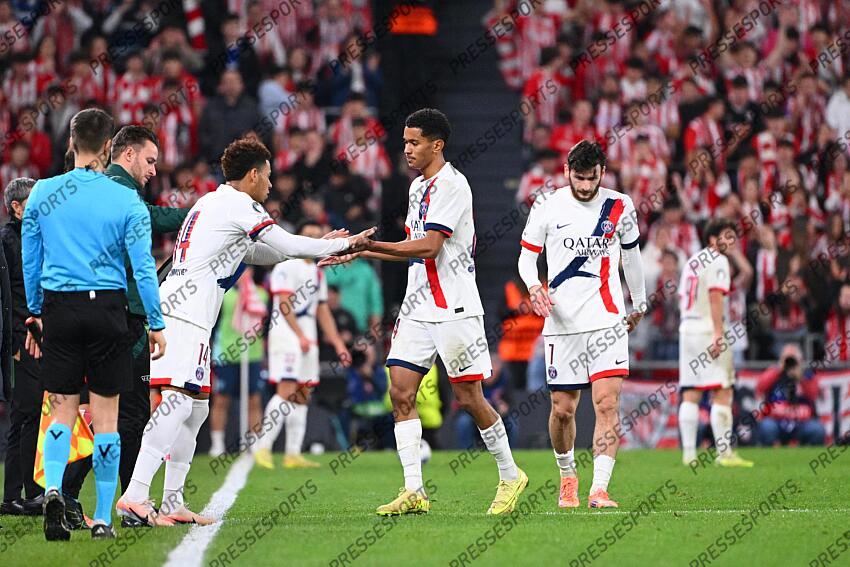 doue (desire) mayulu (senny) FOOT LIGUE DES CHAMPIONS 2025 ATHLETIC BILBAO-PSG (0-0) STADE SAN MAMES BILBAO ESPAGNE 10/12/2025 FAUGERE FRANCK