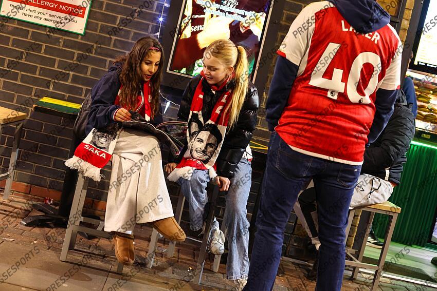 28th January 2026, London - UEFA Champions League Football, Group Stage - Arsenal v Kairat - Young Arsenal fans look at a match programme - Photo: Charlotte Wilson / Offside. ARSENAL-KAIRAT ALMATY (3-2)