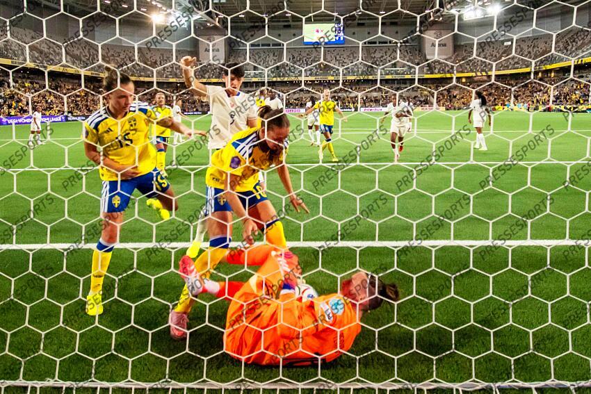 Julia Zigiotti Olme 15 Sweden , Rosa Kafaji 10 Sweden and Pauline Peyraud-Magnin 16 France fighting for the ball during the UEFA Nations League game on December 2nd 2025 between Sweden and France at Stockholm Arena in Stockholm, Sweden PUBLICATIONxNOTxINxBRAxMEX Copyright: xPeterxSonander/SPPx Sportspressphoto_SPR69138 petitie finale match pour la 3e place SUEDE FEM-FRANCE FEM (2-2)