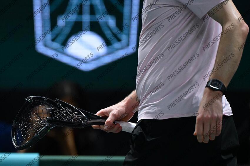 TENNIS ROLEX PARIS MASTERS ATP MASTERS 1000 2025 AUGER ALIASSIME/BUBLIK PARIS LA DEFENSE ARENA NANTERRE FRANCE 01/11/2025 REAU ALEXIS raquette cassée de Bublik (Alexander)