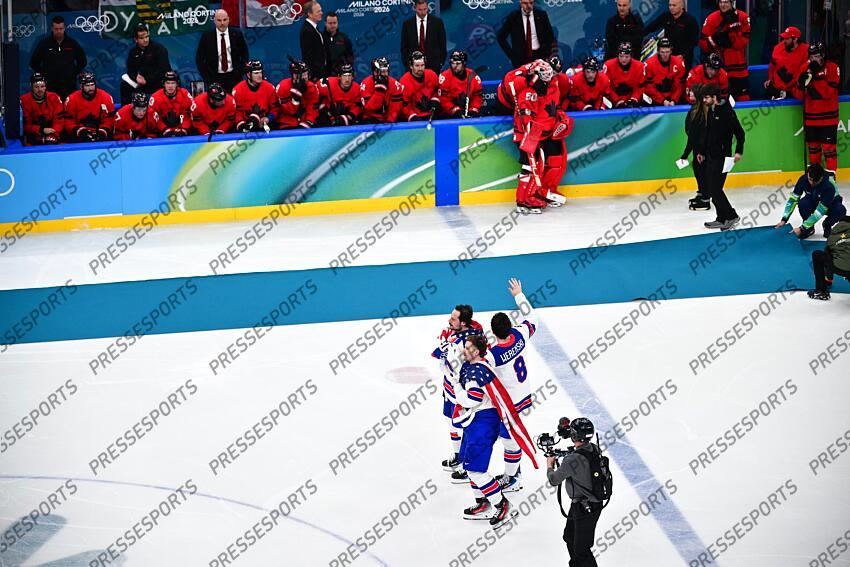 hellebuyck (connor) - (usa) - tkachuk (matthew) - (usa) - werenski (zach) - (usa) - 8 HOCKEY SUR GLACE JO MILAN CORTINA 2026 2026 CANADA-ETATS UNIS (1-2 ap) SANTAGIULIA ICE HOCKEY ARENA MILAN ITALIE 22/02/2026 PAPON BERNARD