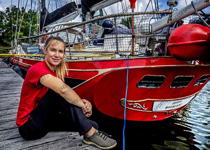 Nederland, Medemblik, 06-07-2022 Portret van ‘zeilmeisje’ Laura Dekker op de grote Guppy in de haven van Medemblik Foto ; Pim Ras/ ANP/ Hollandse Hoogte LAURA DEKKER