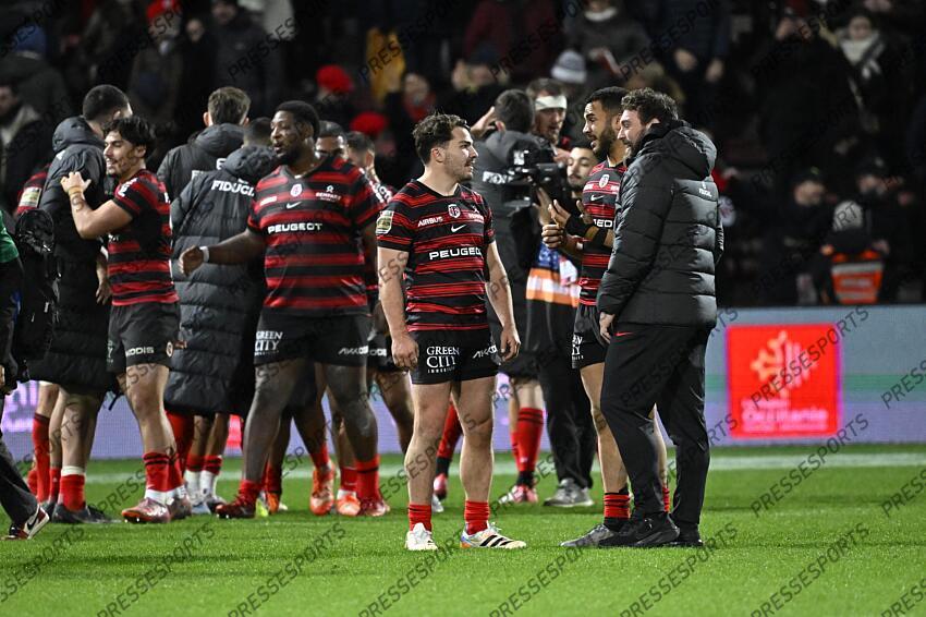 dupont (antoine) lebel (matthis) lacombe (virgile) RUGBY TOP 14 2026 TOULOUSE-PAU (59-22) STADE ERNEST WALLON TOULOUSE FRANCE 24/01/2026 MANTEY STEPHANE