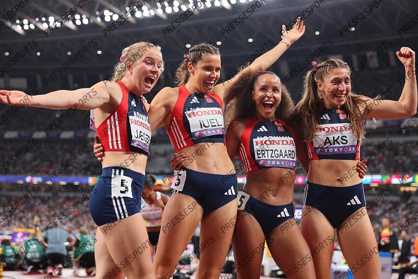 Jaeger (Henriette) - (nor) - Iuel (Amalie) - (nor) - Ertzgaard (Astri) - (nor) - Aks (Josefine Tomine Eriksen) - (nor) - ATHLETISME CHPTS DU MONDE 2025 2025 RELAIS 4 X 400 M FEMMES STADE OLYMPIQUE NATIONAL TOKYO JAPON 20/09/2025 BOUE SEBASTIEN