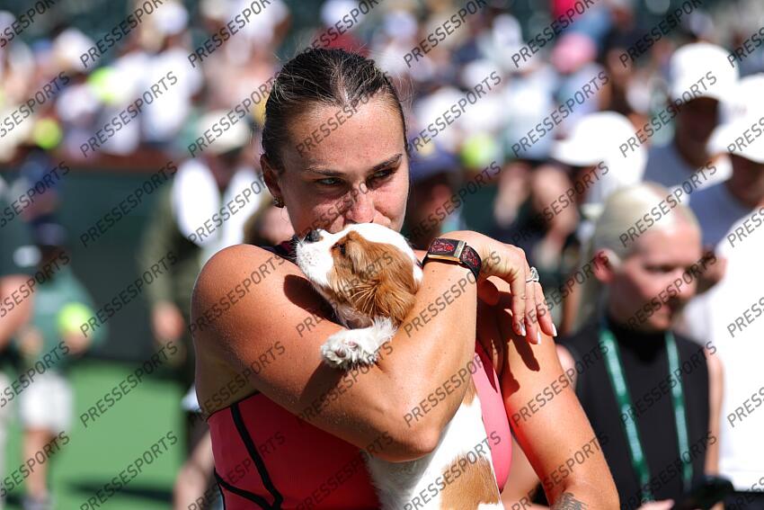 Aryna Sabalenka (Blr) and her dog at the BNP Paribas Open in Indian Wells, 2026 OPEN INDIAN WELLS