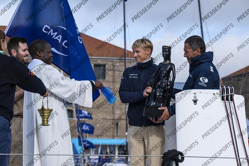 ATTANASIO Romain (FRA)-SOREL Maxime (FRA), IMOCA "FORTINET – BEST WESTERN », Remise de la Vierge noire de Rocamadour / Baptème du bateau et des skippers, TRANSAT CAFE L’OR 2025 ANIMATIONS AVANT LE DEPART DE LA 17 EME EDITION DE LA ROUTE DU CAFE